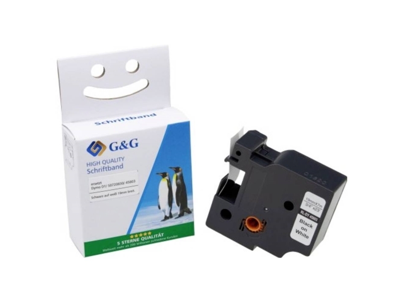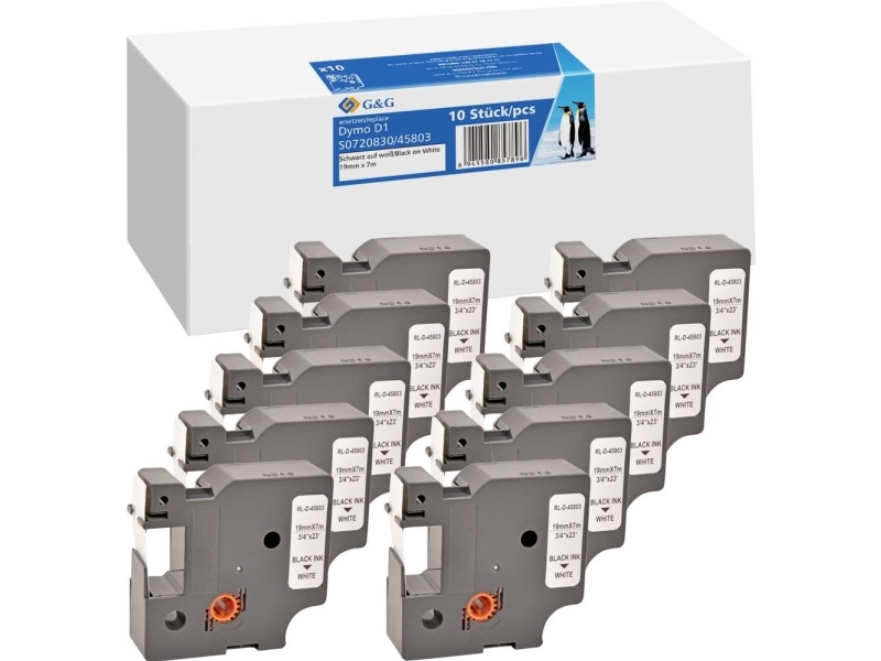 G&G D1 Skriftband Set med 10 st Bandfärg: Vit Teckenfärg: Svart 19 mm 7 m