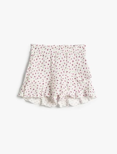 Koton Girls's Mini Skort Flower Tryckt Envelop Ruffle Textured Shorts, Ecru Design (0d1), 7-8 Jahre