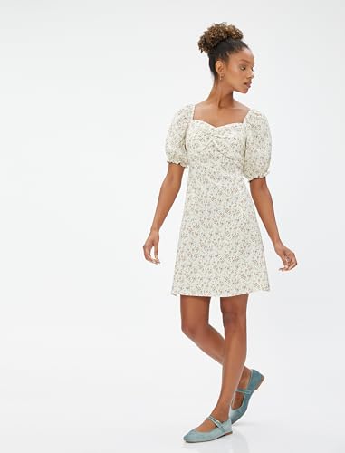Koton kvinnor puffärm viskosblandning mini blommig klänning, Ecru Design (0d1), 34
