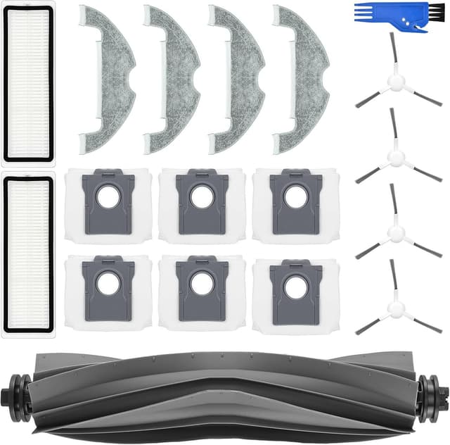 Homruich 25 stycken tillbehör för Dreame D10 Plus Gen 2 robotdammsugare reservdelar, 2 huvudborste, 4 filter, 6 torkdukar, 6 dammpåsar, 6 sidoborste, 1 rengöringsverktyg