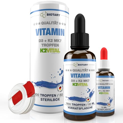 Vitamin D3 K2 droppar 50 ml, (K2VITAL) 99,7 % All-Trans, inklusive Sterilbox, reseflaskor, hög dosering 1 000 I.E. = 25 µg D3 + 20 µg K2, laboratorietestad
