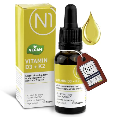 N1 Vitamin D3 K2 droppar 735 st. - Premium: 99,7 % All-Trans (K2VITAL® från Kappa) + hög tillgänglig D3, vitamin d k2, hög doserad, optimal doserad