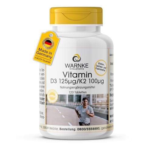 Vitamin D3 + K2 Depot - 120 tabletter - 125μg D3 + 100μg K2 per tablett - tysk apotekskvalitet - hög dos - vegan | Warnke Vital Substances