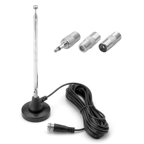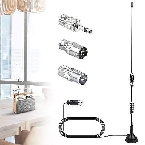 FM-radio och DAB-antenn för hem, Hi-Fi-stereo, magnetisk bas, 75 ohm, teleskopisk förlängningskabel, 3 m, kompatibel med stereoförstärkare, hi-fi-mottagare, ljudvideomottagare