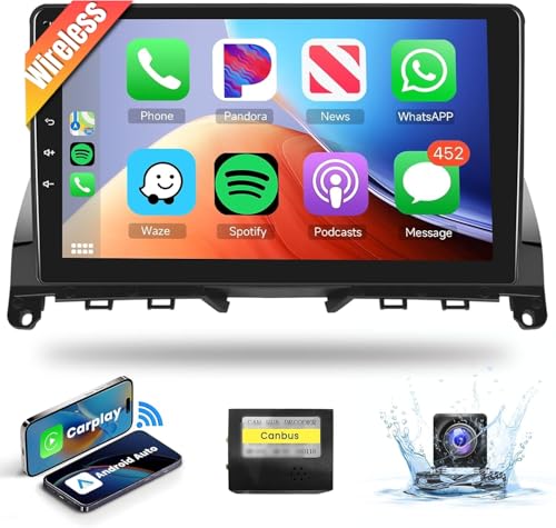 Podofo Bilradio för Mercedes C Klass W204 S204 2007-2010 Android 13 Carplay Trådlös Android Bil med Wifi-skärm GPS HI FI Bluetooth/RDS/FM Radio DAB+ med AHD-kamera