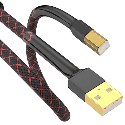 Tertullus High End HiFi USB-kabel 1 m A-B för ljudströmning, DAC, dator, ljudkort, dekoder, förstärkare, digitalspelare – USB-A till USB-B digital skrivarkabel