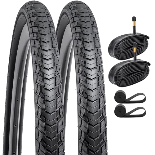 YUNSCM 2-PCS 700C Road Bike däck 700 X 32C/32-622 och 700C tunga cykelrör Schrader-ventil med 2 fälgremsor kompatibla med 700X30C 700X32C 700X33C 700X34C cykeldäck och rör (Y-126)