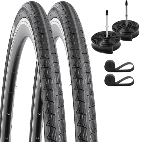 Fincci cykeldäck 28 tum – uppsättning par 23-622 700x23c däck med cykelslang 28 tum och 1 mm punkteringsskydd 60 TPI, för vägcykel, stadsliv, turcykel racing, e-cykel, 2-pack cykeltillbehör