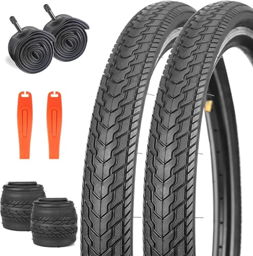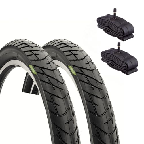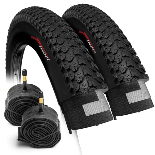 Fincci Pair 60 cm cykeldäck – set hopfällbara mountainbike-däck 26 x 2,125 med 26 tum innerslang Schrader cykelventil för MTB/Längdcykel, stad – pack cykeltillbehör 57-559