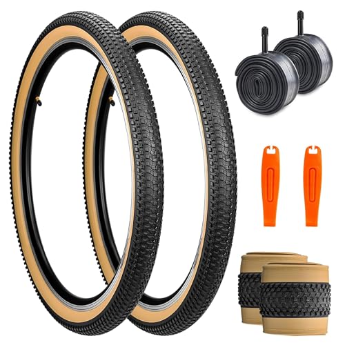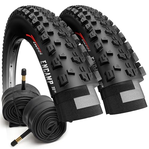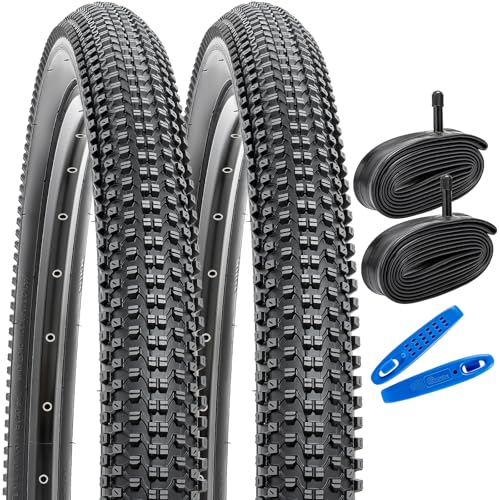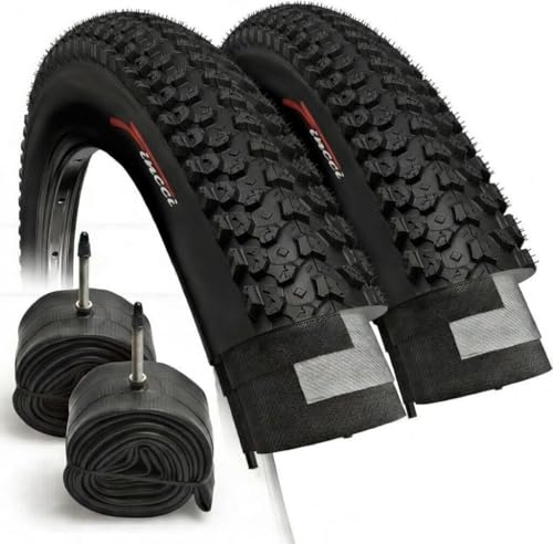 Fincci Pair 60 cm cykeldäck – set hopfällbara mountainbike-däck 26 x 2,125 med 26 tum innerslang presta cykelventil för MTB/terräng, landsvägscykel, stad – pack cykeltillbehör 57-559