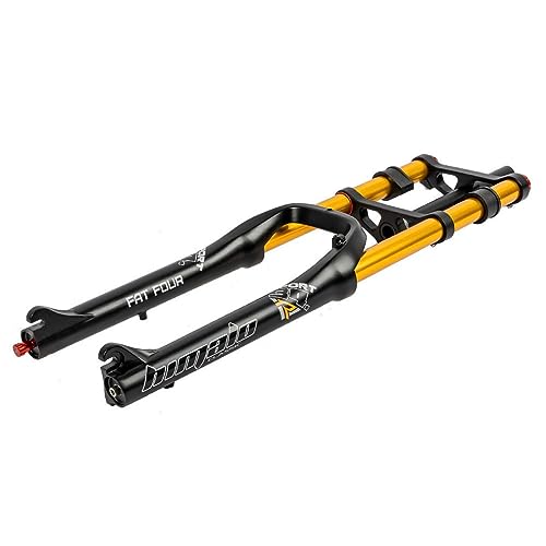 26 Tum Fjädrande Gaffel För Cykel 4.0'' Däck Fet Gaffel Rak Dubbel Axel Nedförsbacke MTB Luftgaffel Slaglängd 160mm Justerbar Återfjädring Manuellt Lås (Color : Gold)
