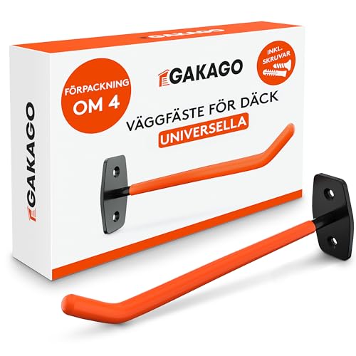 Gakago däckhållare väggfäste - 4-delad fälghållare väggset inkl. skruvar & pluggar med monteringsanvisningar - Extra lång däckhållare väggfäste - hållare för bildäck & fälgar för förvaring