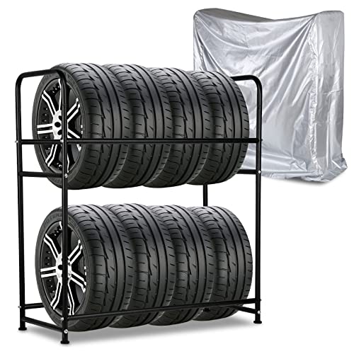 EINFEBEN Däckställ för 8 däck, däckhållare, höjdjusterbar, 107 x 46 x 117 cm, lastkapacitet 180 kg, med däckskydd, för garage, källare, verkstad