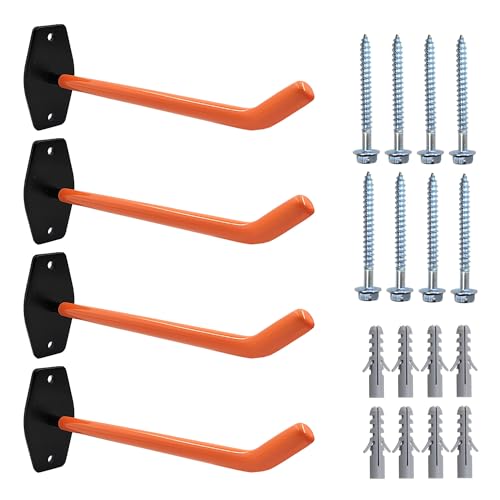 QUVBKZ 4-pack däckhållare set bläck däckförvaringshylla, väggfäste, 26 cm stora garagelkrokar, slitstarka, för att organisera garage, däckhjul, stege med mera