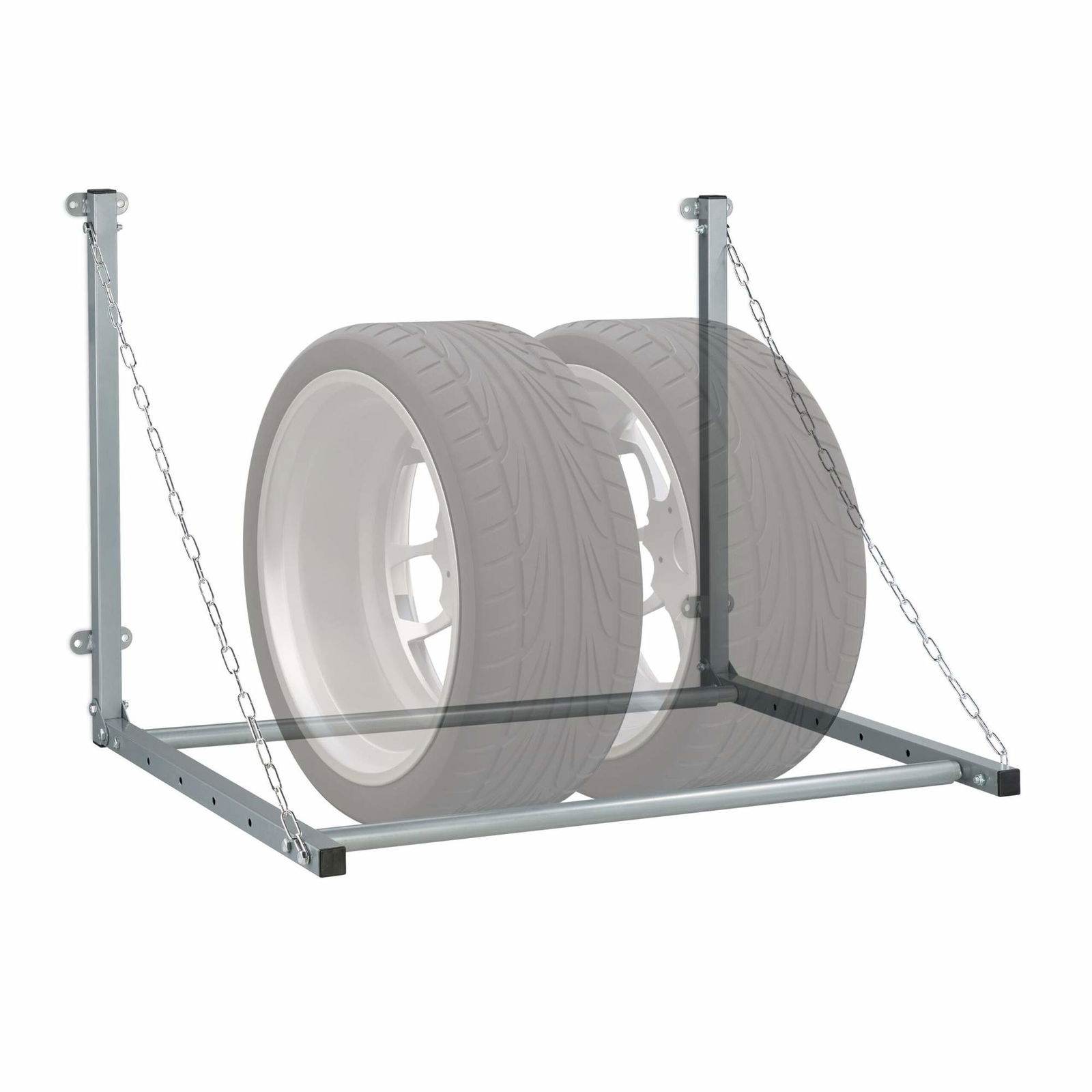 Relaxdays Däckhylla väggmontering, för 4 däck, teleskop däckhållare vägghållare, upp till 90 kg, vikbar, stål, svart