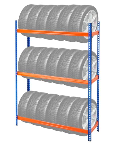 VEVOR Däckförvaringsställ, däckhållare med 3 hyllor rymmer upp till 18 standarddäck, SPCC-SD slitstarkt däckbärarstativ i metall med justerbart avstånd för garageverkstad, 299 kg lastkapacitet