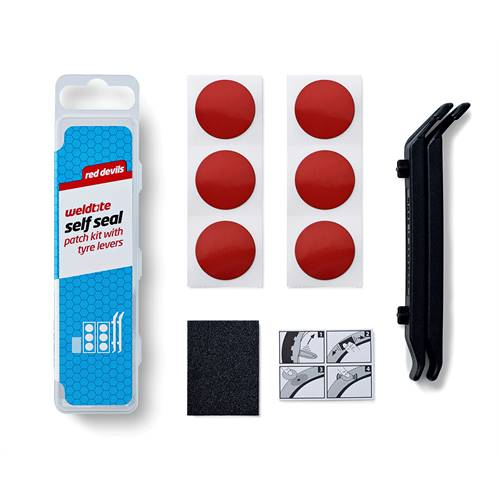 Weldtite Weldtite Red Devils Self Seal Patch Kit with Tyre Levers | Däckliagningskit självhäftande med däckjärn