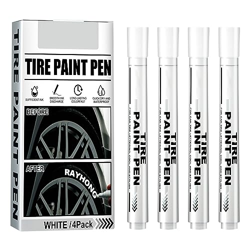 PAYFULLY 4 stycken bil däckmarkeringspenna, vit däckmarkör gör-det-själv däckpenna däck färgpennor för bil motorcykel däck