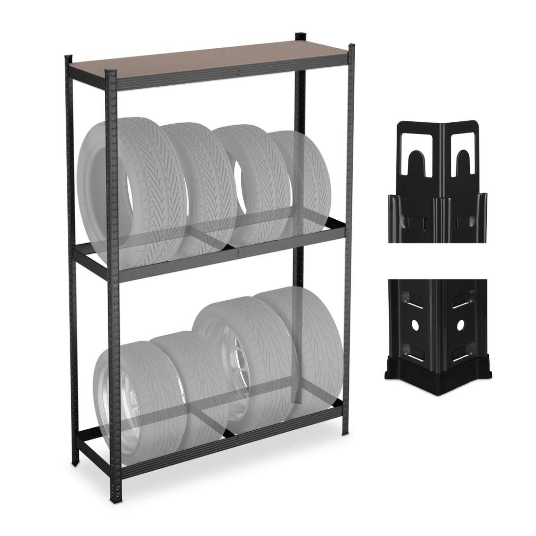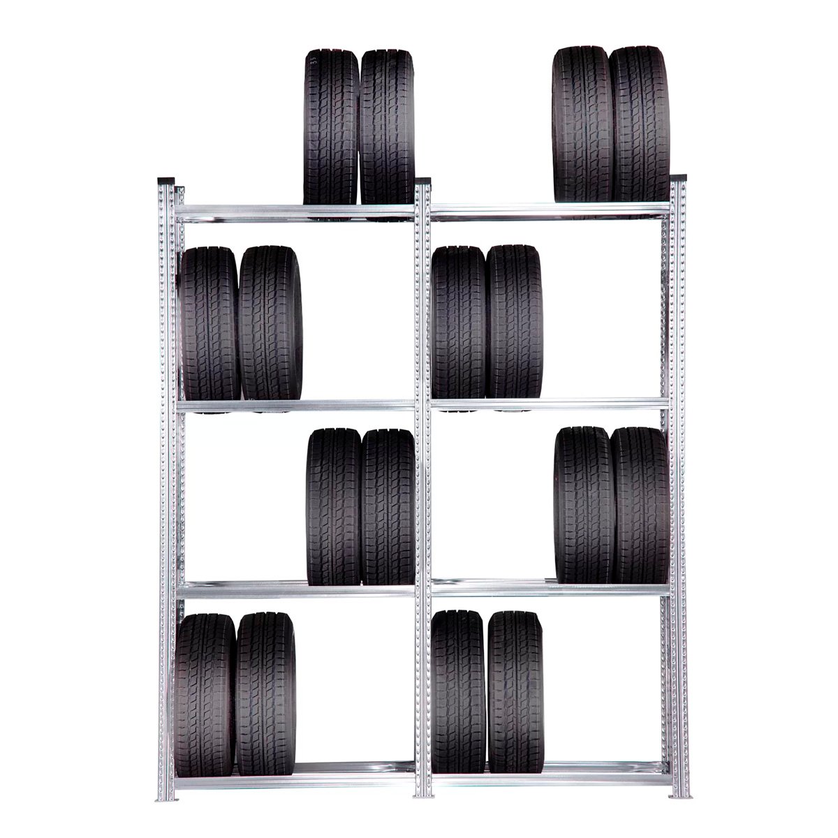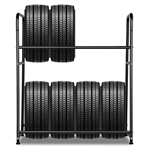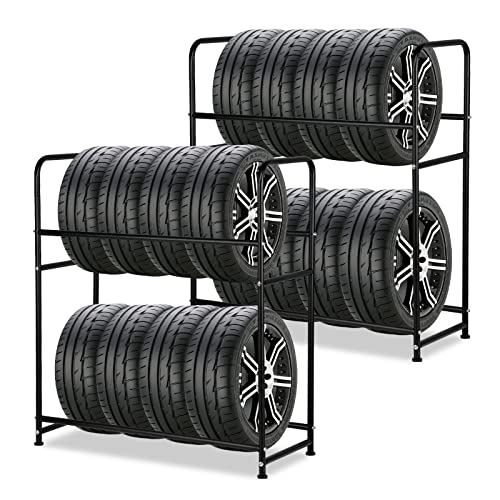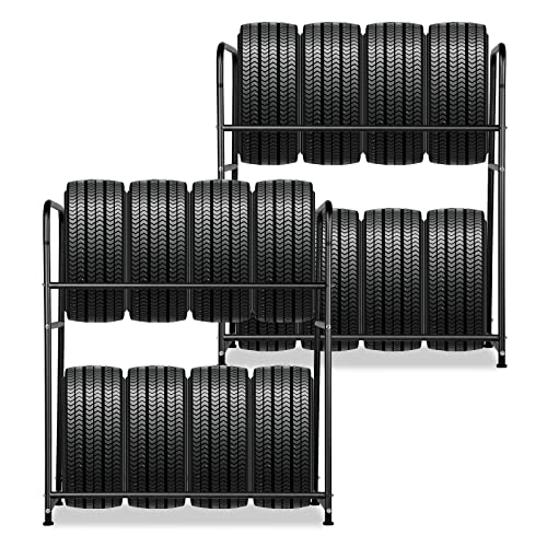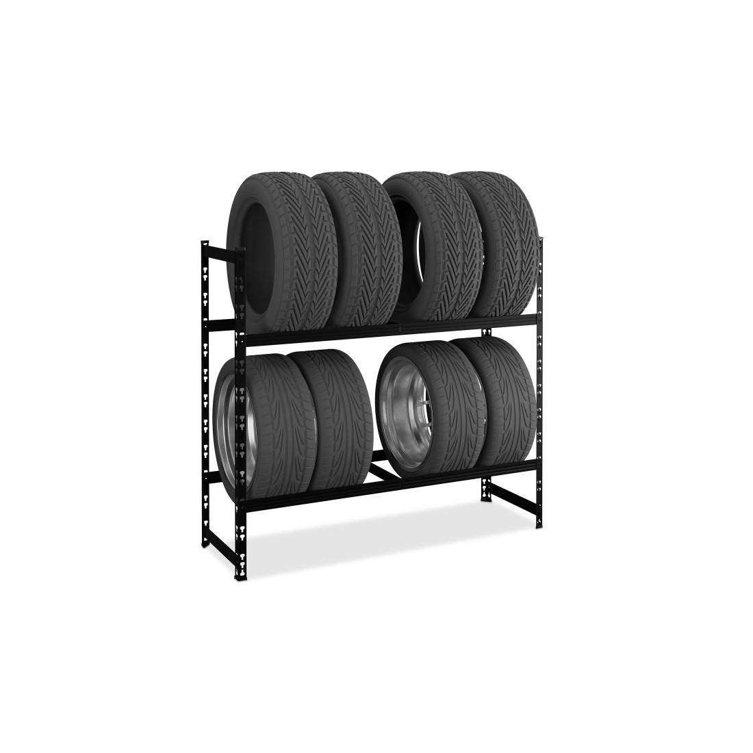 SWANEW 2X däckställ däckställ för 8 däck fälgställ fälgträd sparar mycket utrymme förvaringsställ, lastkapacitet 180 kg, för garagekällare inklusive skruvar och pluggar, 107 x 46 x 117 cm