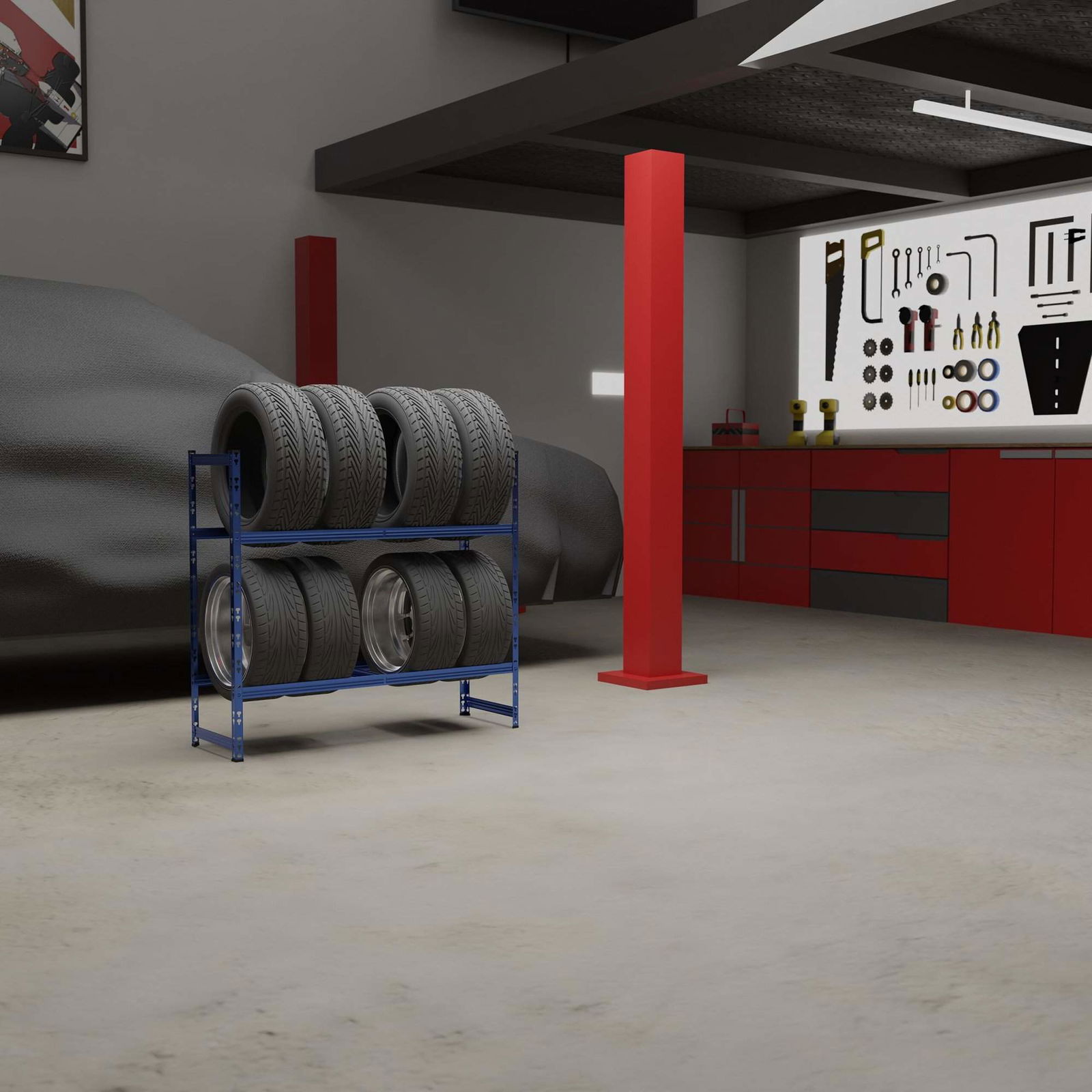 Wiltec Däckhylla – 180 x 120 x 40 cm – upp till 795 kg – för 8 däck – i stål – däckställ lagerhylla förvaring av bildäck hylla
