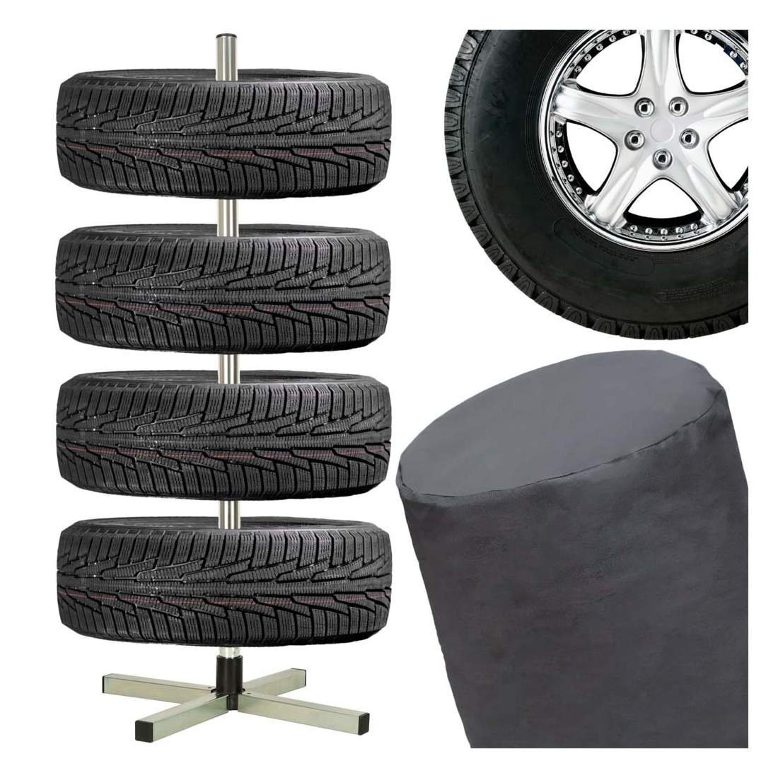 Lospitch Däckställ, 8 däck, höjdjusterbar, lastkapacitet: 180 kg, med skyddsfodral, fälghållare, bildäck, 2 lager