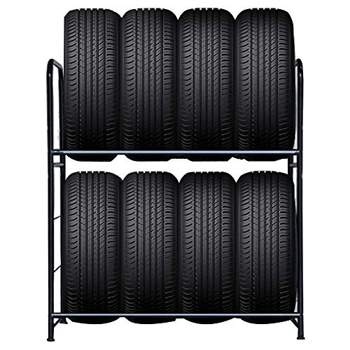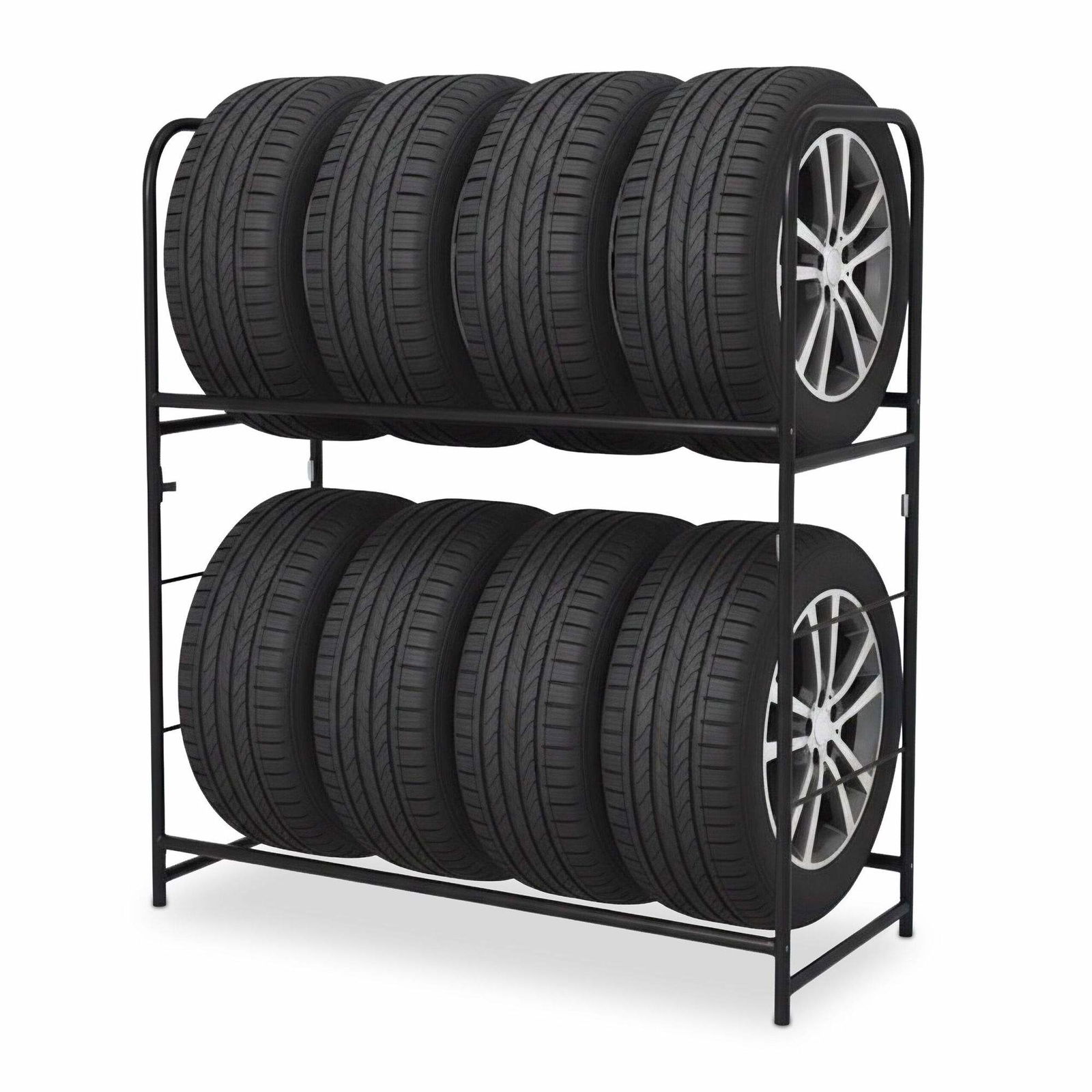 Froadp 107 × 46 × 117 cm stålkonstruktion däckställ i två lager för 8 däck verkstadshylla garagehylla förvaringshyllor fälgträd tung lasthylla lastbar 180 kg (svart pulverlackerad)
