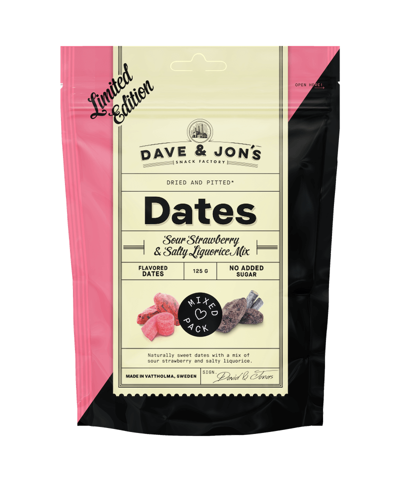 Dave & Jons Dadlar Sour Strawberry-Salty Liquorice 125g x 16st