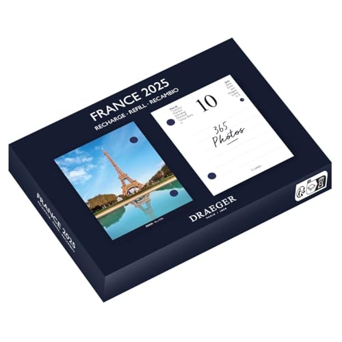 Draeger Paris - Yvon 2025-7 språk ephemerisk dagbok refill - 365 ark från januari till december 2025-1 foto för varje dag på året - Frankrike - FSC®-certifierat papper