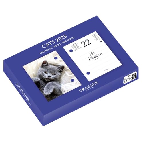 Draeger Paris - 2025-7 språk Yvon efemerisk dagbok refill - 365 ark från januari till december 2025-1 foto för varje dag på året - katt - FSC®-certifierat papper