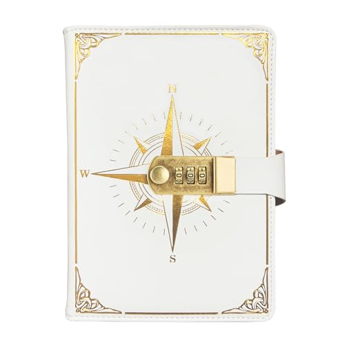 NectaRoy Reseanteckningsbok, Anteckningsblock med lås, Dagbok med kod (Kompassmönster), Hemlig Tjejanteckningsbok för Skolkontor, Student, Brevpapper, Födelsedagspresent, 22 x 15cm (Vit)