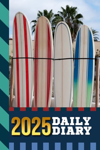 2025 Daily Diary: Hardcover / One Page Per Day / 6x9 Dated Organizer With Hourly Planner - 1 Hour Time Slots / To Do List / Notes Section / Scheduling ... - Surf Surfing Surfer Water Sport Cover