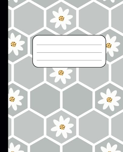 Honeycomb Flower Composition Notebook | 110 Lined Pages | Elegant Grey & White Daisy Design | Perfect for School, Work, or Journaling