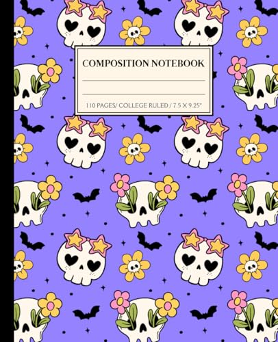 Halloween Composition Notebook: Skulls, Bats, Stars, Daisy Flowers Purple Pastel Pink & Yellow Design, Y2K Preppy Aesthetic College Ruled Journal ... Office, Writing, Journaling Stationery