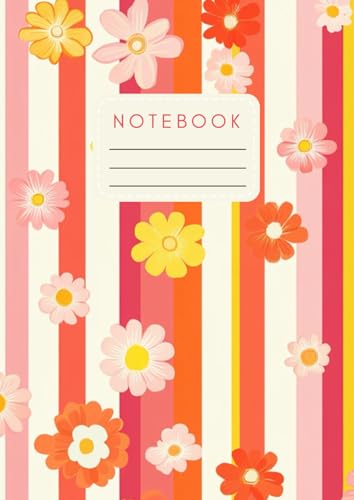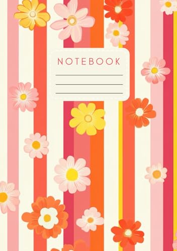 Notebook A5 – 160 Pages, 90 gsm Paper | Groovy Vintage Daisy Stripe Design | Also Available in A4 and Pocket Size | Fun & Colorful Journal for Writing or School| Retro Floral Stationery