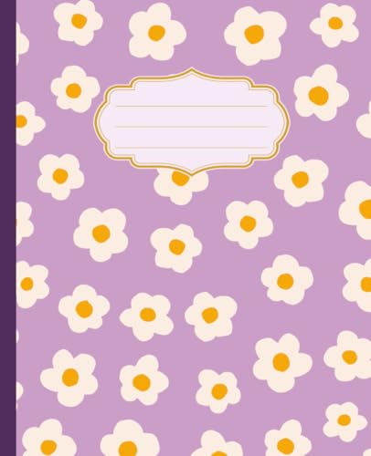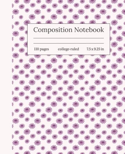 Composition Notebook: Cute Daisy Design, Purple | Floral Journal for College, School, Office & Work | Wide Ruled, 7.5 x 9.25 in, 110 Pages