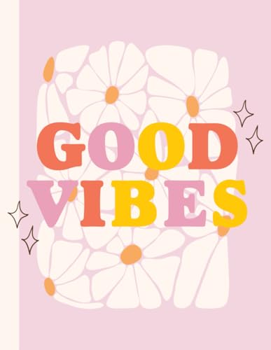Good Vibes Aesthetic Composition Notebook – Cute Pink Retro Flower & Daisy Design – Large 8.5”x11” College Ruled Journal – Trendy Pastel Softcover for School, Work, Journaling – Teen Girl Gift Idea