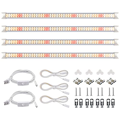 Niello T8 växtlampa LED, 4-pack fullspektrum odlingslampa för inomhusväxter, 60cm 72w 660 nm / 3000 K / 6500 K växtljus daisy chain design för sådd, odlingshyllor