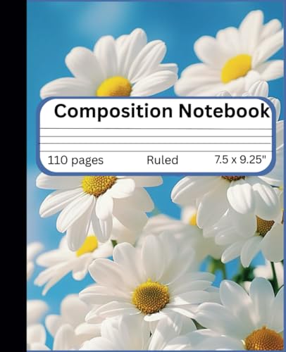 Composition Notebook: Cute Daisy Design, Blue | Floral Journal for College, School, Office & Work | Wide Ruled, 7.5 x 9.25 in, 110 Pages