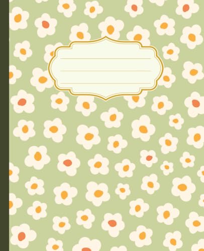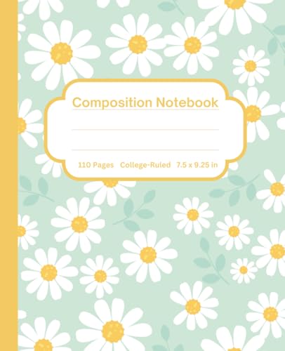 Composition Notebook: Cute Daisy Design, Green | Floral Journal for College, School, Office & Work | Wide Ruled, 7.5 x 9.25 in, 110 Pages