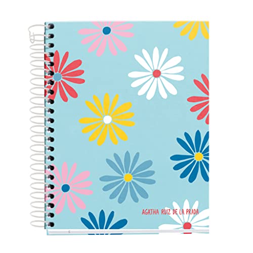 Miquelrius MR46656 Anteckningsbok A6, 120 ark 70 gr, Grid 5 x 5 mm, 4 färgade ränder, Läckad hård skiva, Agatha Ruiz de la Prada, Design Daisy