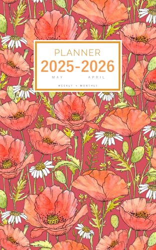 Planner May 2025-2026 April: 5x8 Weekly and Monthly Organizer Small | Poppy Daisy Flower Field Design Red