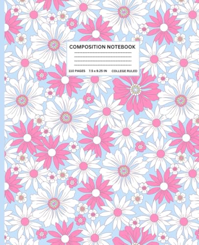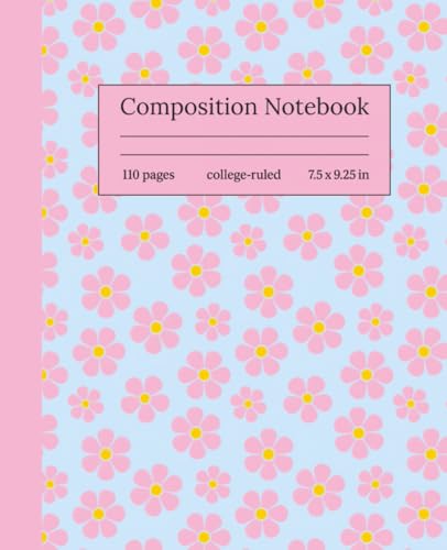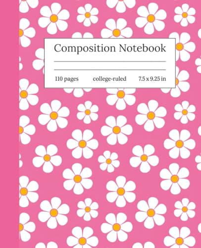 Floral Composition Notebook | Daisy Flower Cover | 7.5 x 9.25 in | 110 Pages | College Ruled Lined Journal: Cute Pink & White Daisy Notebook for School, Journaling, and Daily Writing | Aesthetic Flower Design