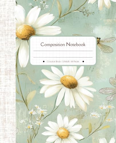 Composition Notebook College Ruled: Vintage Cottage Core Book for Note Taking with Floral Daisy Flower and Dragonfly Design | Cute Aesthetic Botanical ... for Adults, Girls, and Teens | Wide Lined