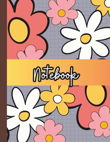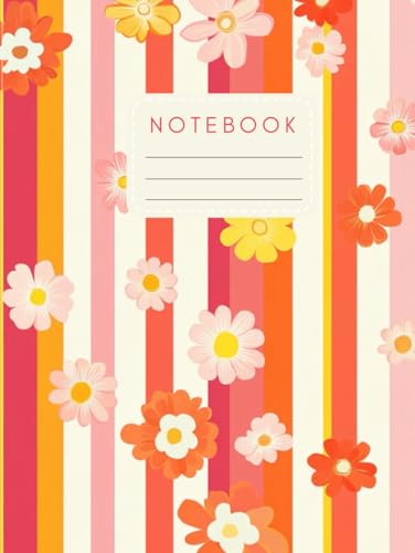 Notebook 8.25" x 11" – 160 Pages, 90 gsm Paper | Groovy Vintage Daisy Stripe Design | Also Available in A5 and Pocket Size | Fun & Colorful Journal for Writing or School| Retro Floral Stationery