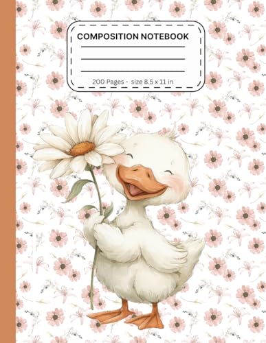 Composition Notebook Cute Duck Adorable Daisy and Floral Design, Large 8.5” x 11”, 200 Pages: Charming Duck and Flower Cover | College Ruled Lined ... Journaling, Writing, and School Notes