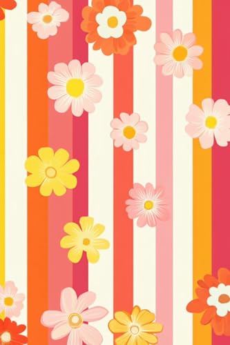 Pocket size Notebook 4" x 6" |120 Pages| Groovy Vintage Daisy Stripe Design | Also Available in A4 and A5 Size | Fun & Colorful Journal for Writing or School| Retro Floral Stationery