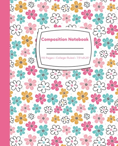 Composition Notebook: Cute Daisy Flower Pattern Design - 110 Pages College Ruled Notebook for Students, Girls, and Everyday Writing