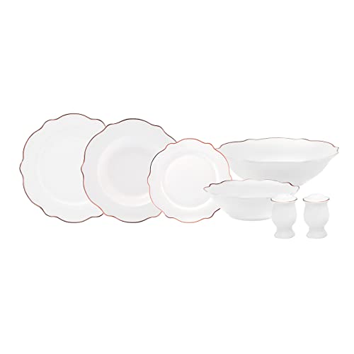Karaca Daisy Rose våg form djup skål 27 delar 6 personer. Porslinsset, bordstabletter, djupa tallrikar, tårttallrikar, skålar, dagliga och speciella porslinsset