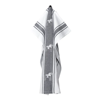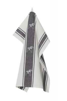 Kökshandduk "Dalahäst" Mörkgrå/Vit