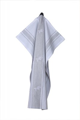 Kökshandduk "Dalahäst" Ljusgrå/Vit